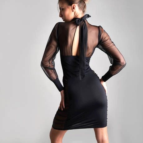 - • Jeux de découpes suggestives en tulle
